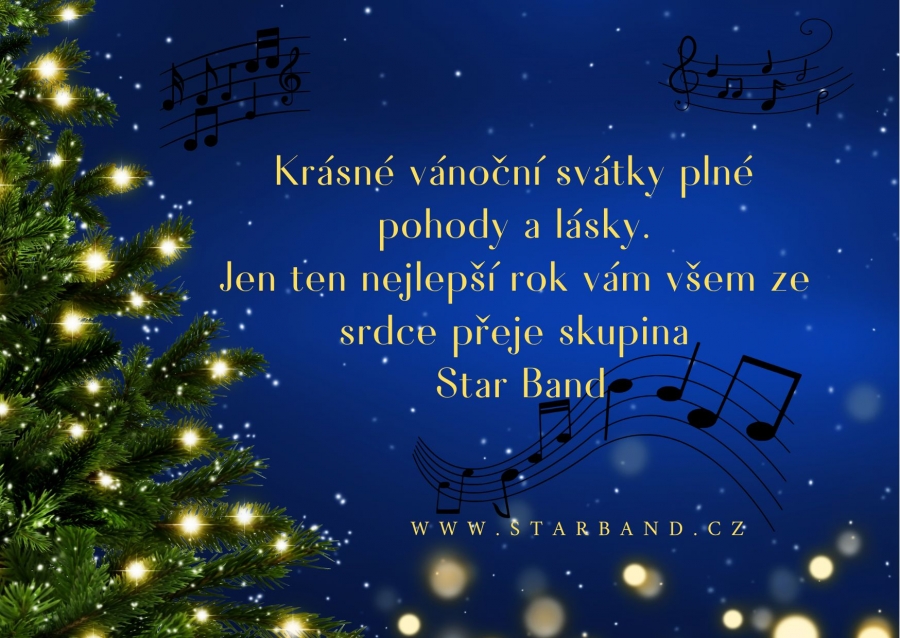Naši milí kamarádi, známí, fanoušci, prostě vy všichni, kteří se rádi bavíte, zpíváte a tančíte. S blížícím se koncem roku, atmosférou adventu a Vánoc téměř všichni z nás hodnotí rok minulý a vzpomínají na krásné věci roku starého. Stejně tak i kapela STAR BAND nasává atmosféru těchto dnů. Velice rád bych vám poděkoval za celý uplynulý rok, za podporu, kterou nám vyjadřujete, za krásné chvíle strávené s vámi. Přeji vám krásný zbytek roku 2025, Vánoce plné pohody, lásky a porozumění, hodně štěstí, zdraví a spokojenosti a jen ten nejlepší vstup do nového roku 2026! Jsme rádi, že jsme s vámi… STARej BANDa